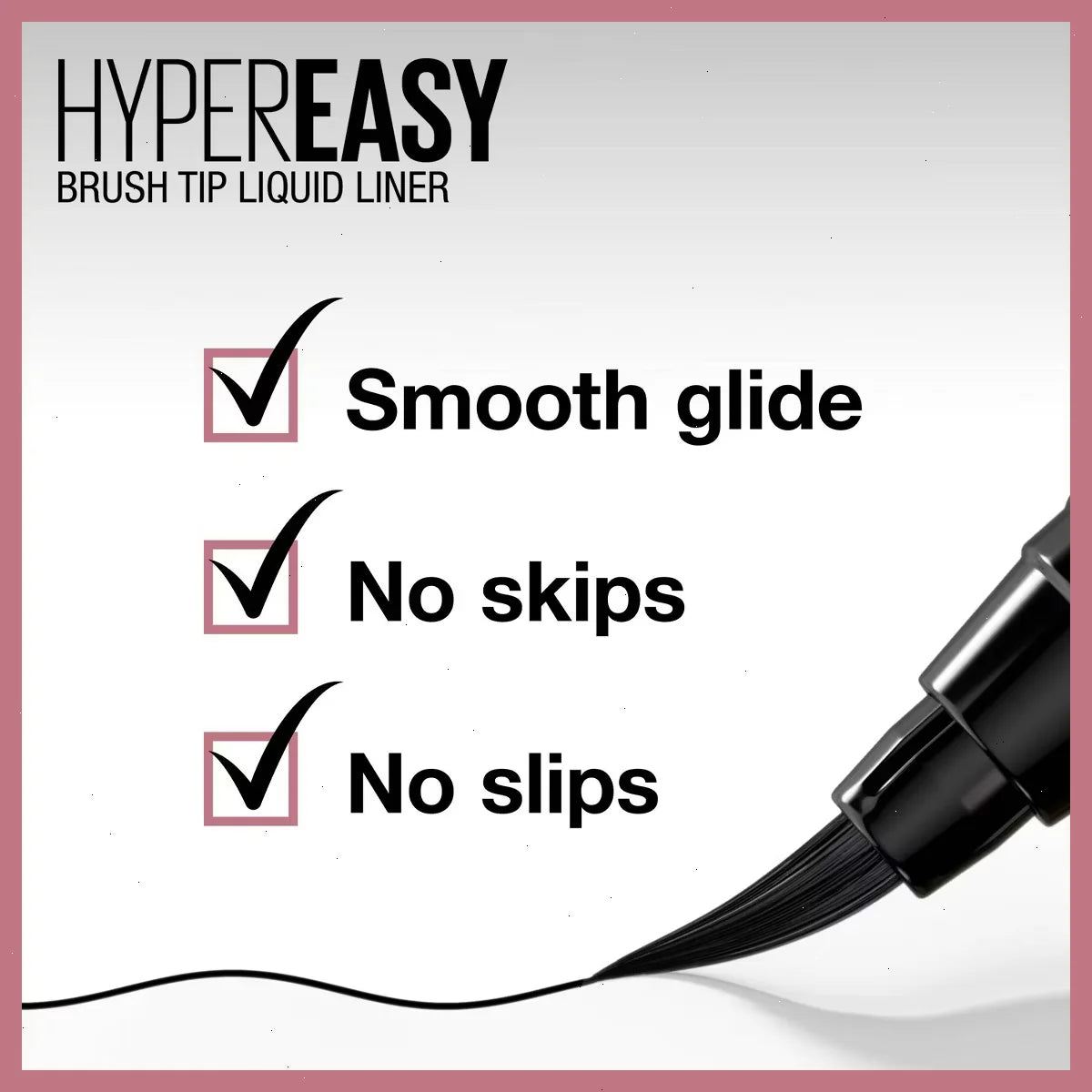 Introducing the liquid eyeliner minus the skips, slips, gaps and struggle. Liquid Eye Liner goes on Hyper Easy. With its Hyper Easy Brush Tip, it delivers the smoothest glide, fitting to the shape of your eye. The revolutionary flex tip brush and custom hexagonal grip gives optimal control and easy, stable application. Available in Pitch Black and Pitch Brown, it lasts up to 24 hours with intense color that doesnât smudge.